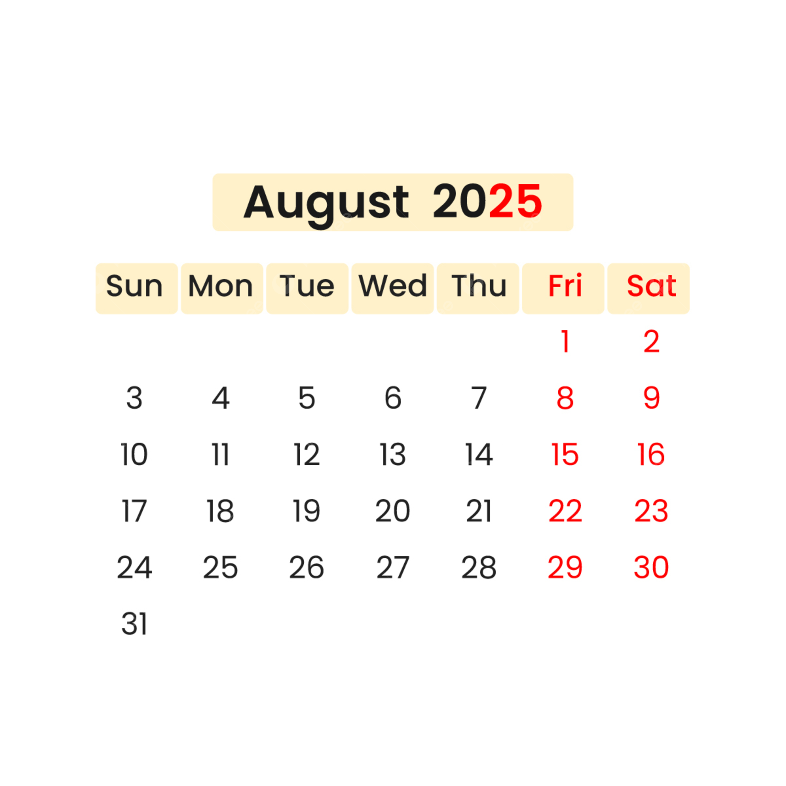 August Complete Vector National Holidays Calendar 2025 2025 Calendar Calendar 2025 Vector August Calendar PNG And Vector With Transparent Background For Free Download