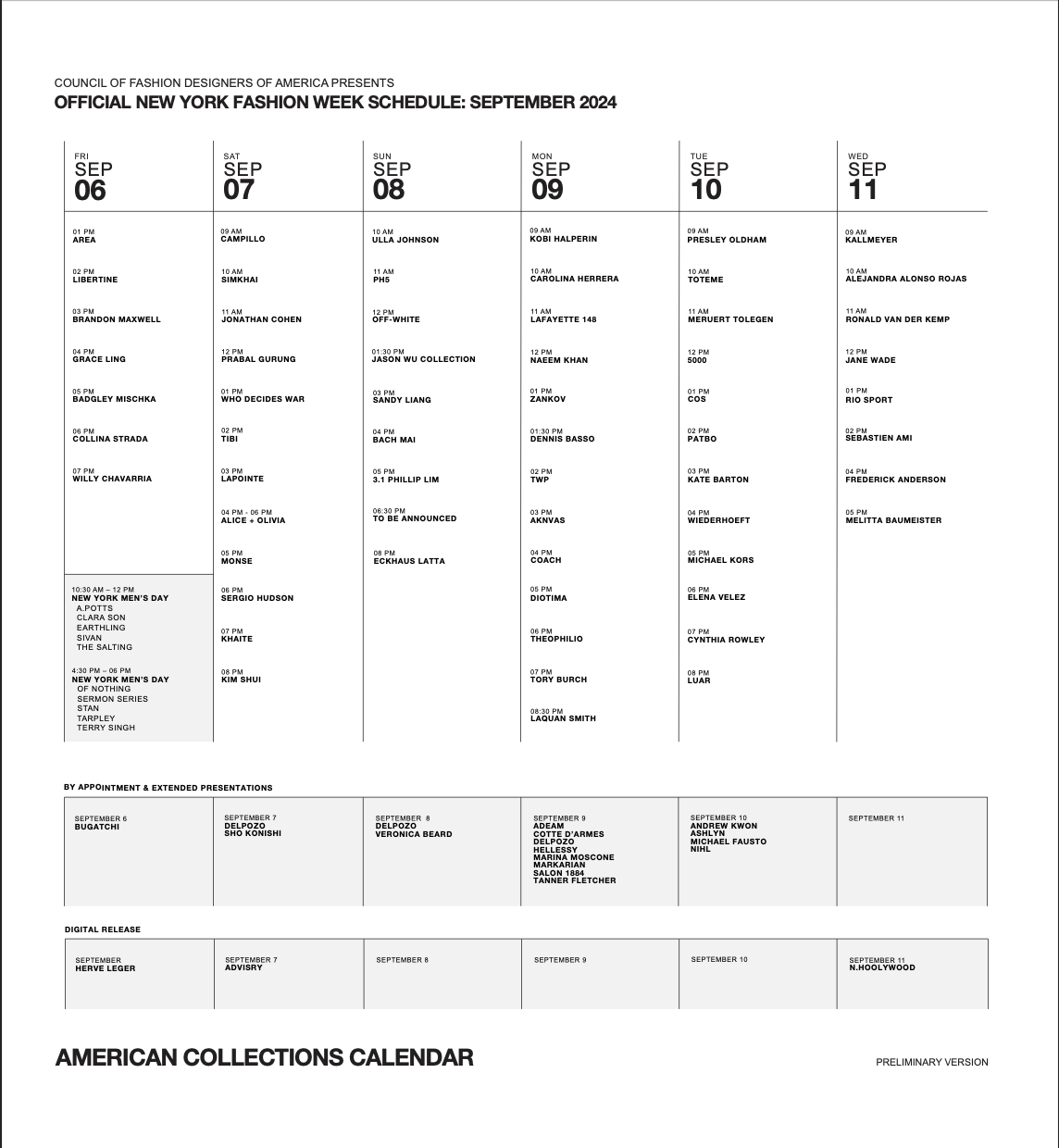 New York Fashion Week Calendar September 2025