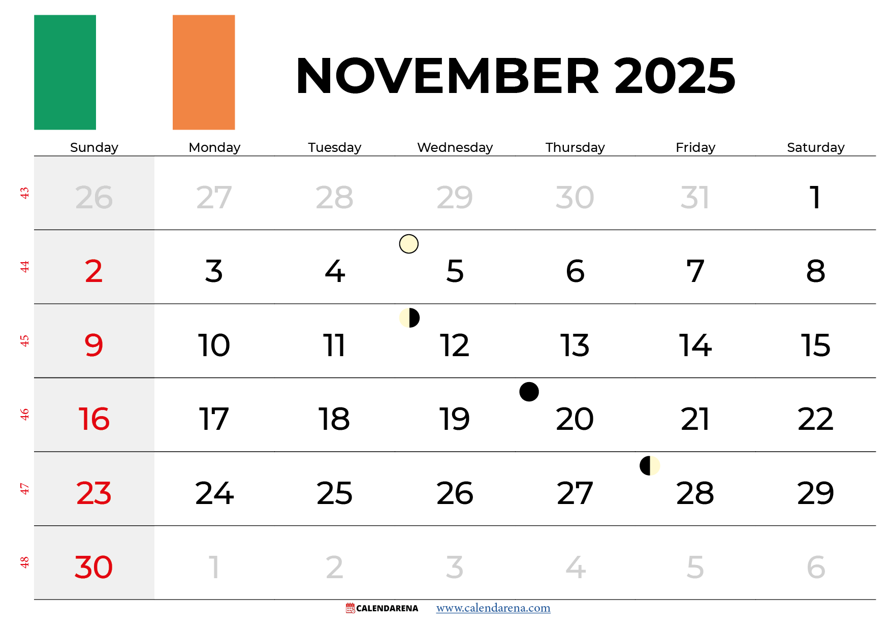 November Calendar 2025 Ireland Holidays U0026 Key Dates