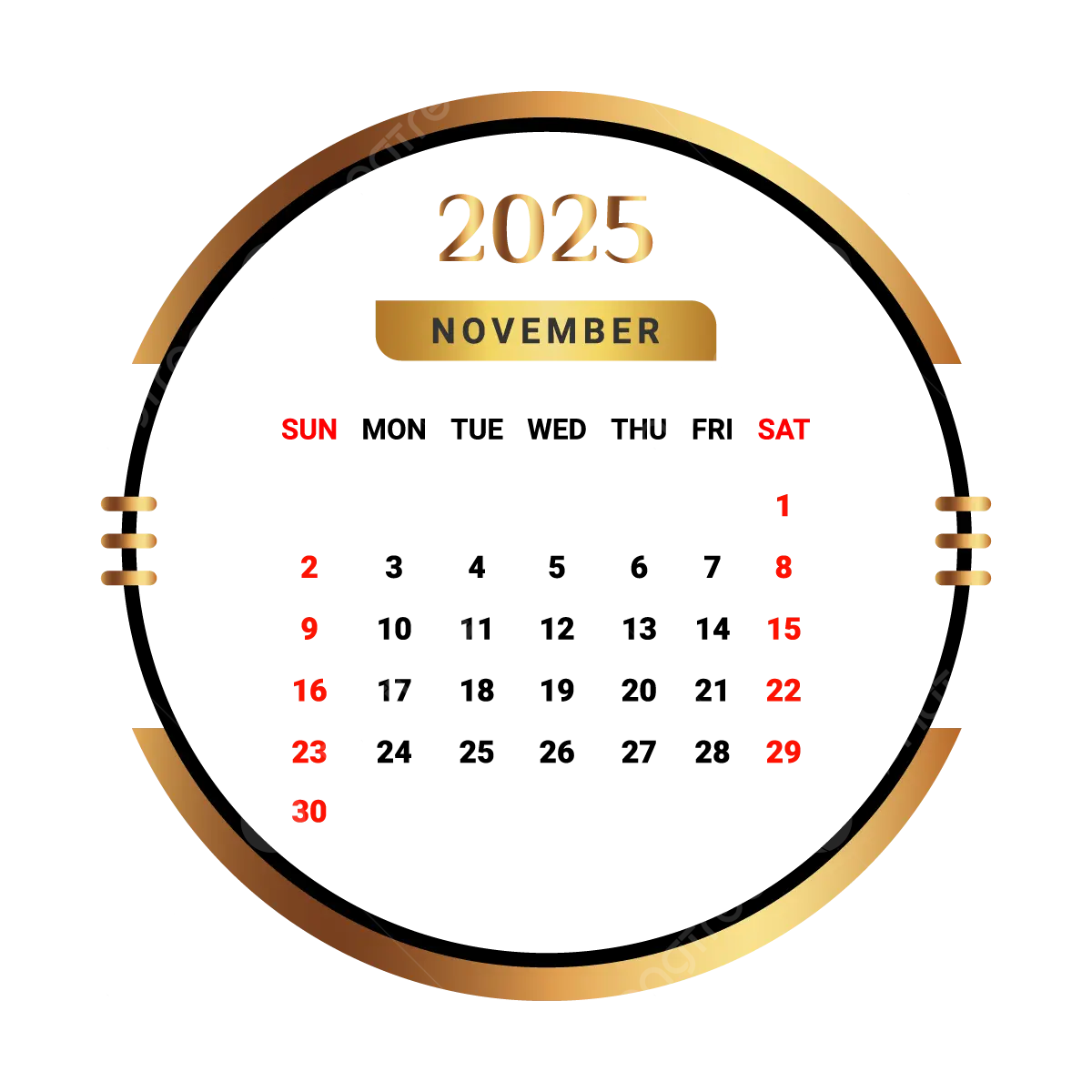 2025 November Month Calendar With Golden And Black Vector Monthly Calendar Calendar November 2025 PNG And Vector With Transparent Background For Free Download