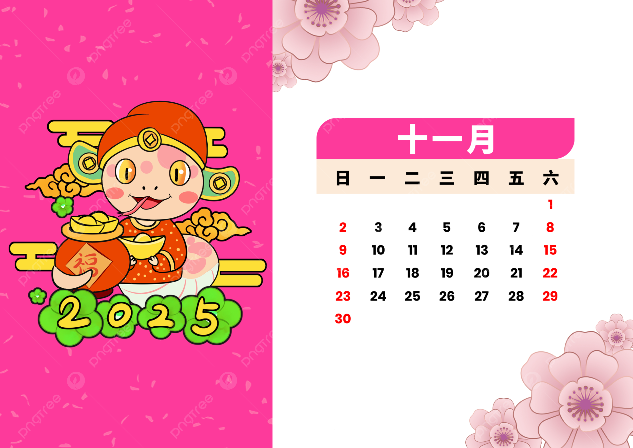 November 2025 Year Of The Snake Chinese Spring Festival Chinese New Year Calendar Template Download On Pngtree