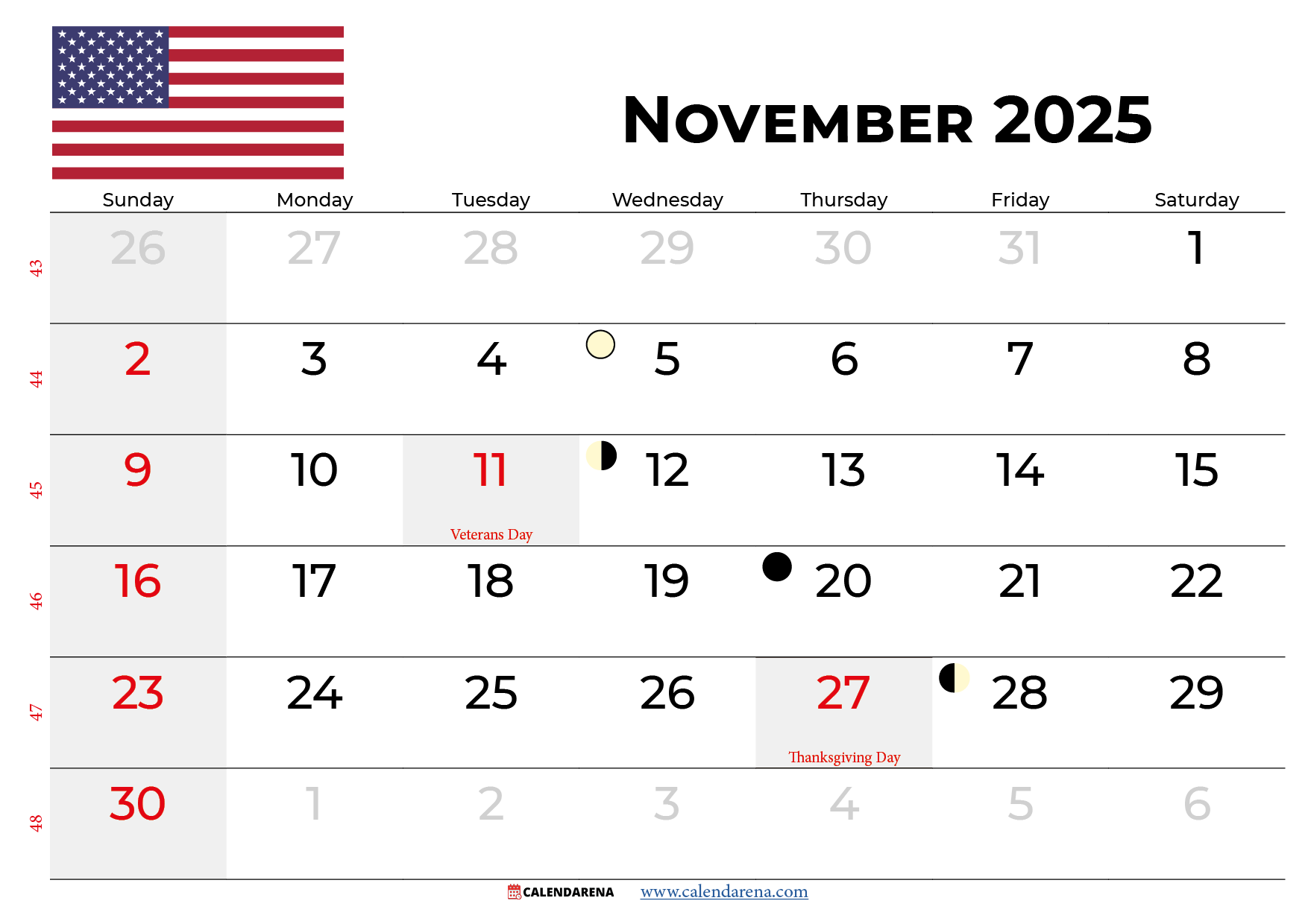 Get ahead of the game and start planning your November 2025 with our calendar today. With all the holidays in the USA included, you can stay on top of your schedule and make the most of this special month.