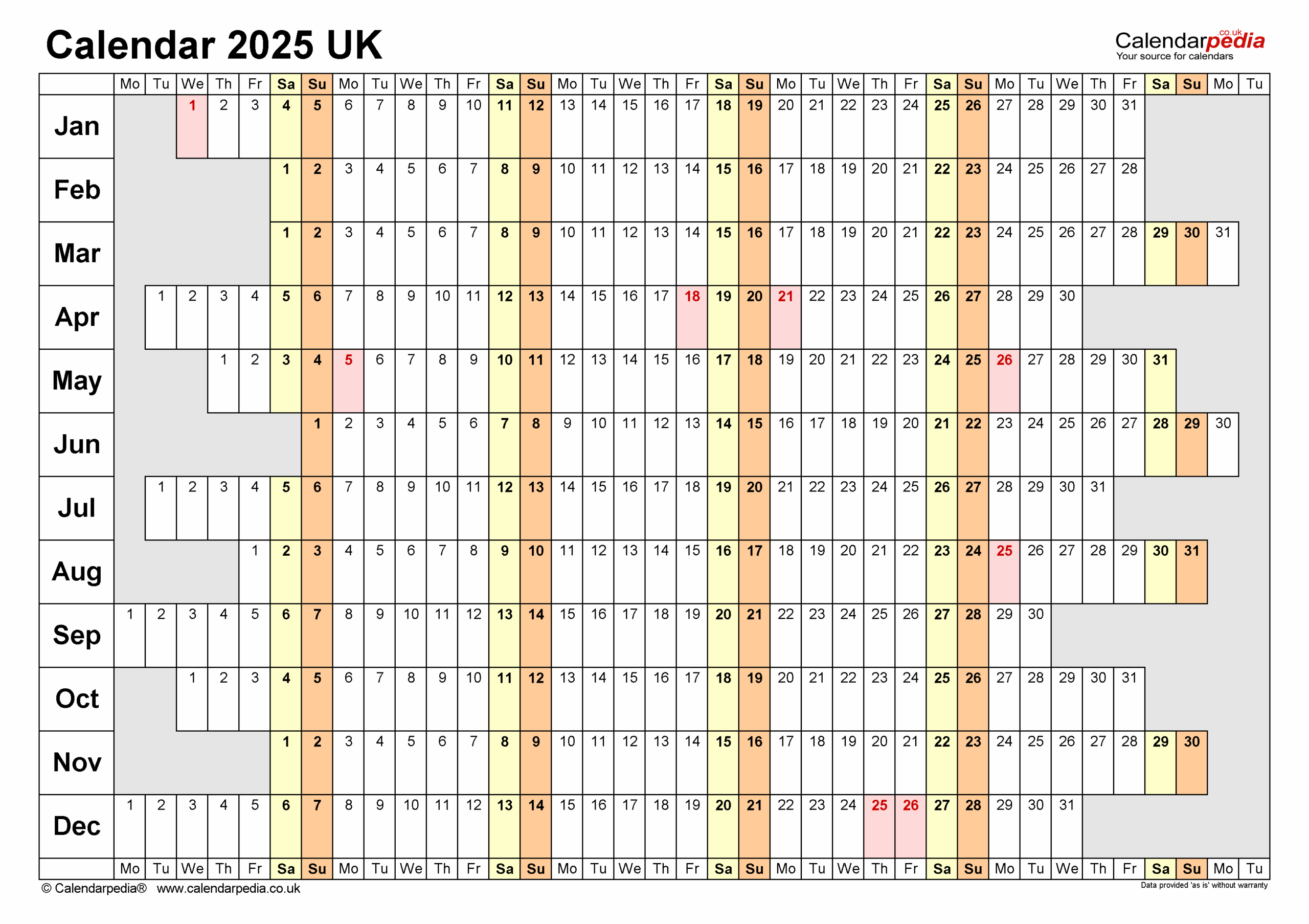 Calendar 2025 UK Free Printable Microsoft Excel Templates
