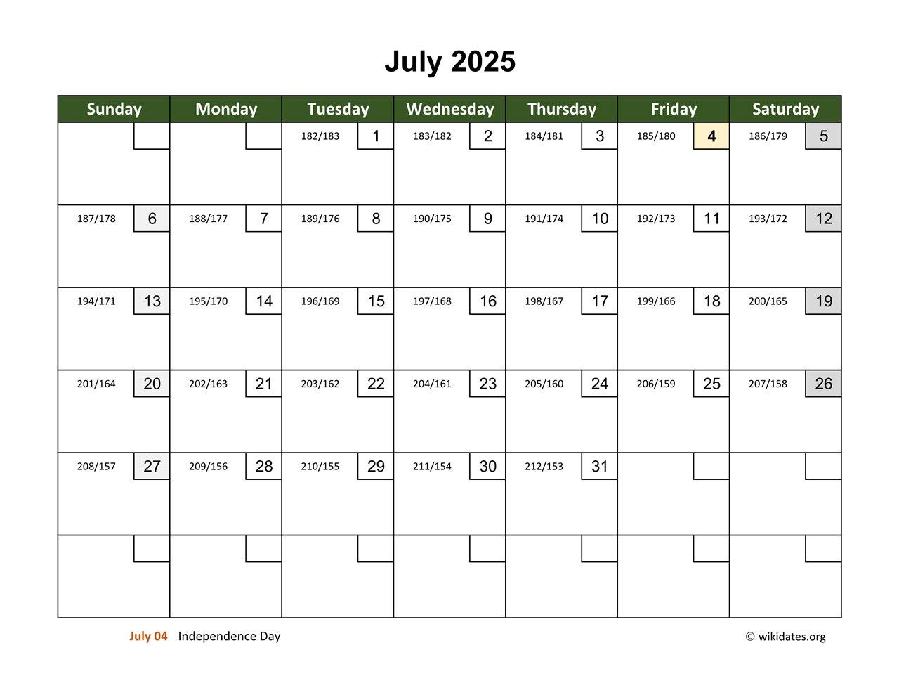 July 2025 Calendar With Day Numbers WikiDates