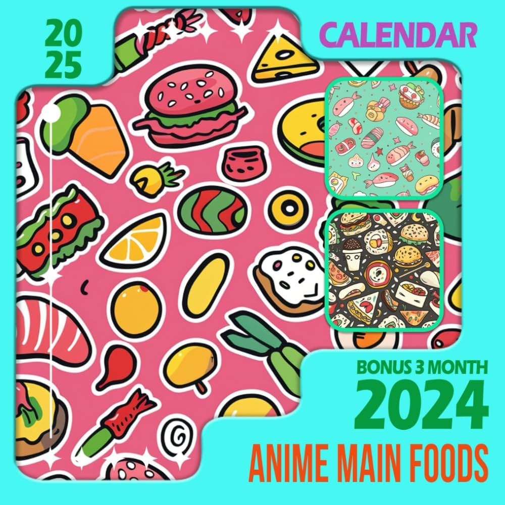 Anime Main Foods Calendar 2025 From October 2024 To December 2025 Including Bonus 3 Months 2024 With Photography Of Colorful Pattern Perfect For
