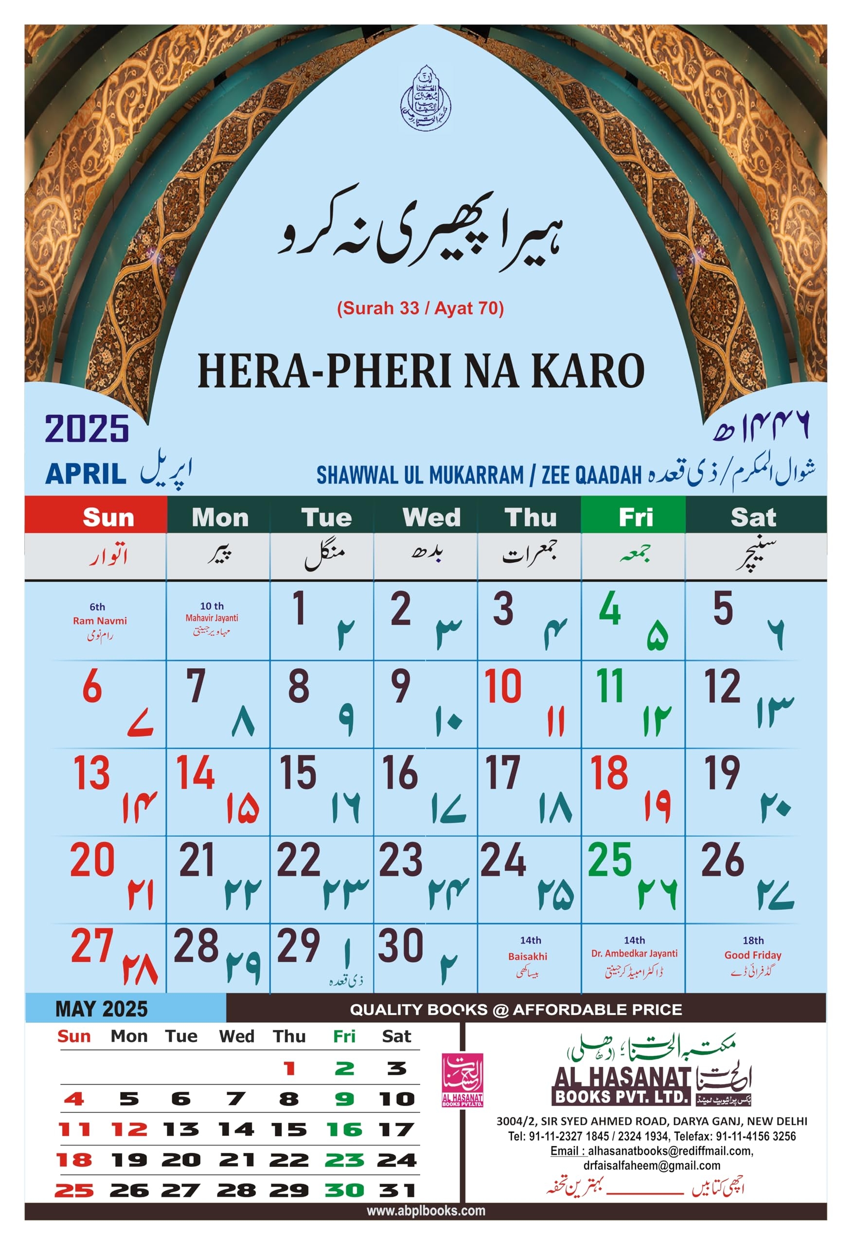 2025 Wall Calendar With Quranic Verses In Urdu U0026 Urdu Roman With Islamic Dates Al Hasanat Books Pvt Ltd Amazon in Office Products