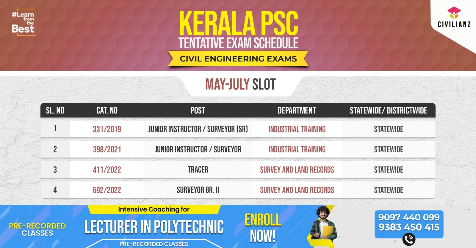 PSC Tentative Exam Calendar 38 Civil Engineering Exams In 2023