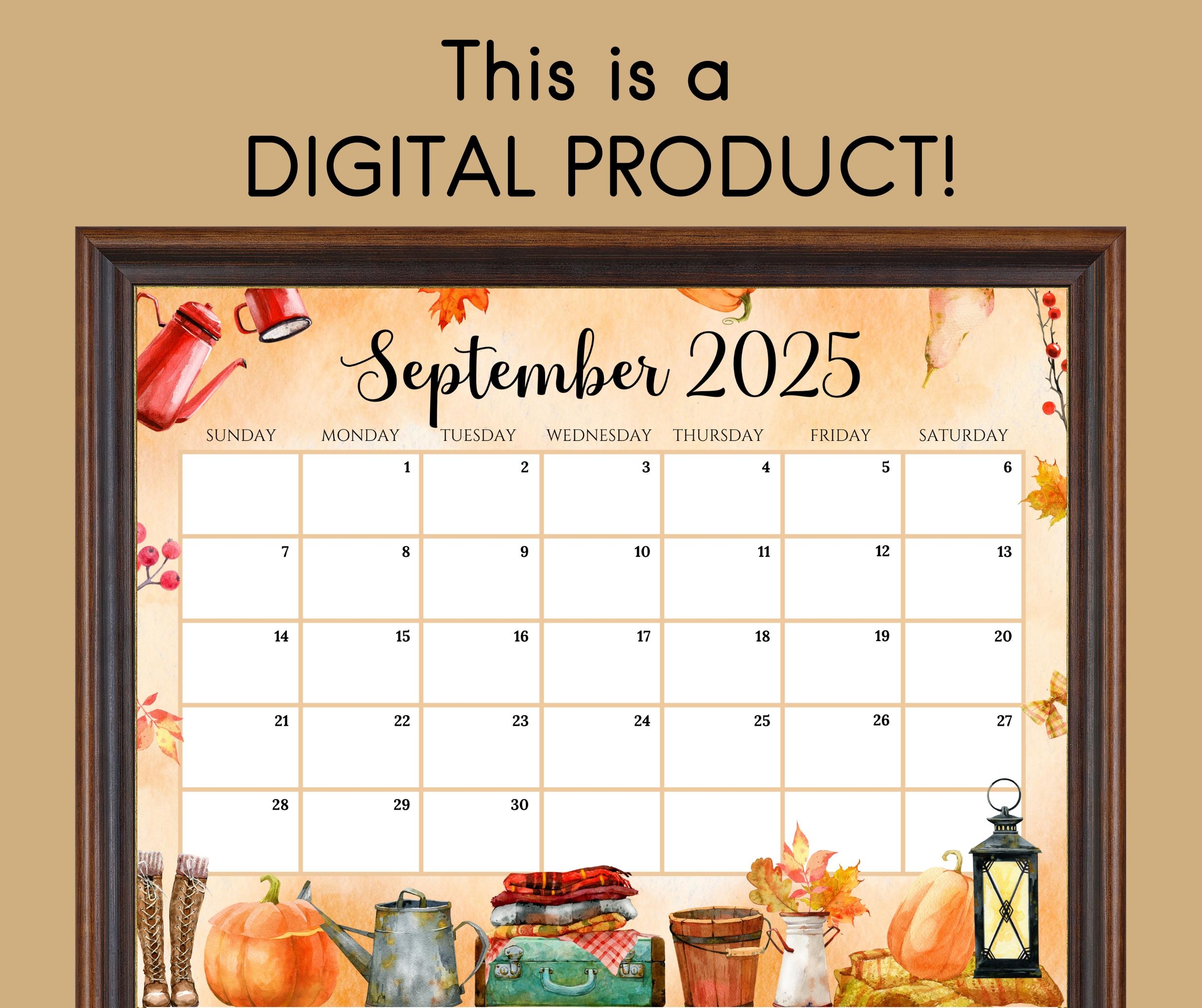 EDITABLE September 2025 Calendar Beautiful U0026 Cozy Fall Autumn Printable Kids School Schedule Classroom Calendar Instant Download Etsy