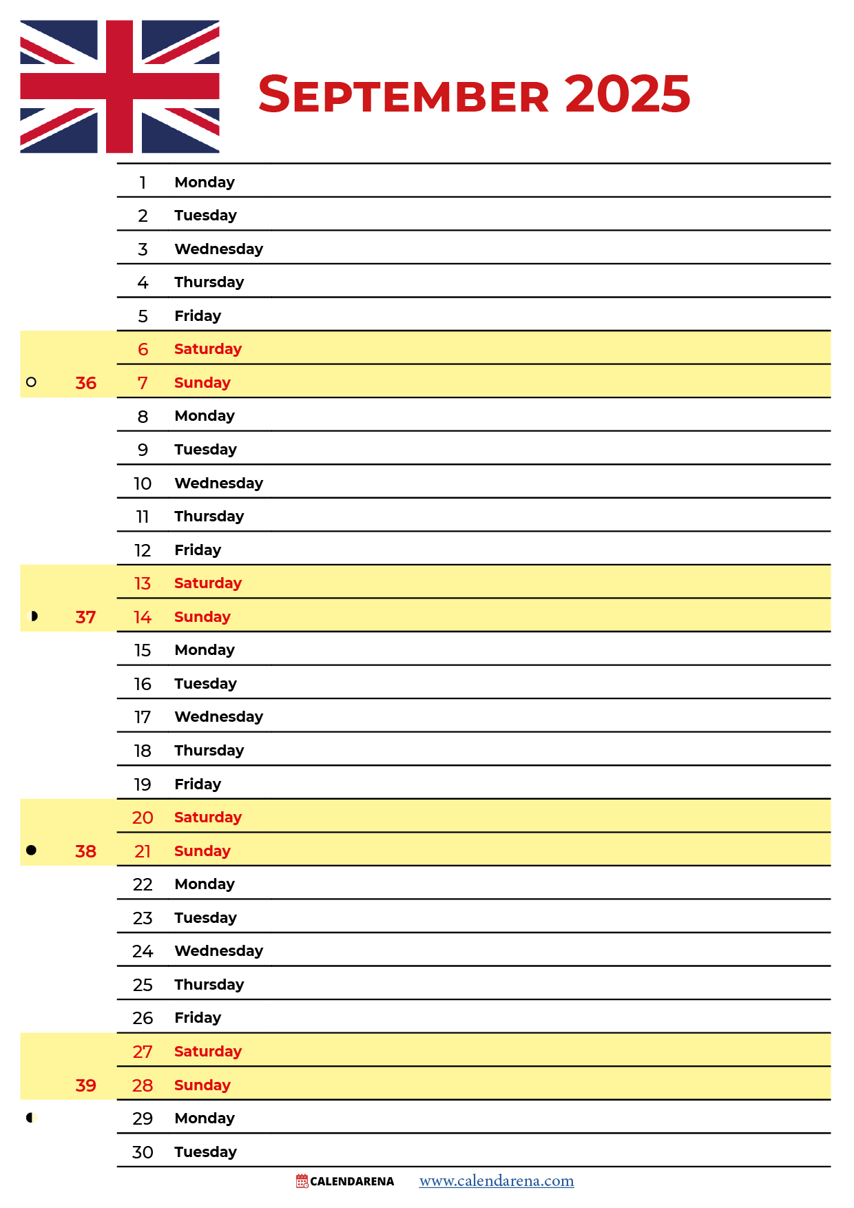 September Calendar 2025 Uk