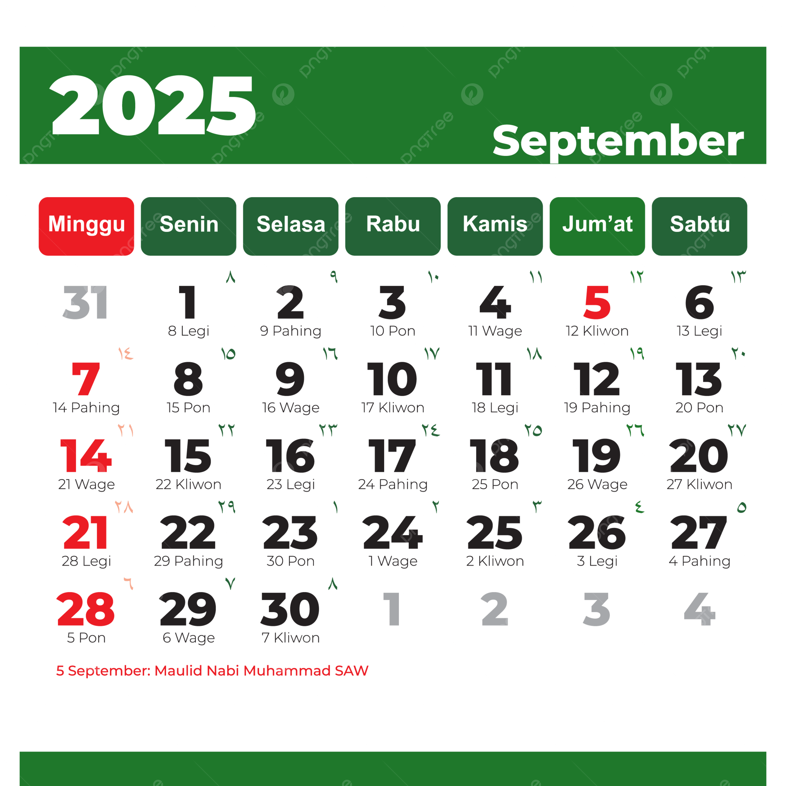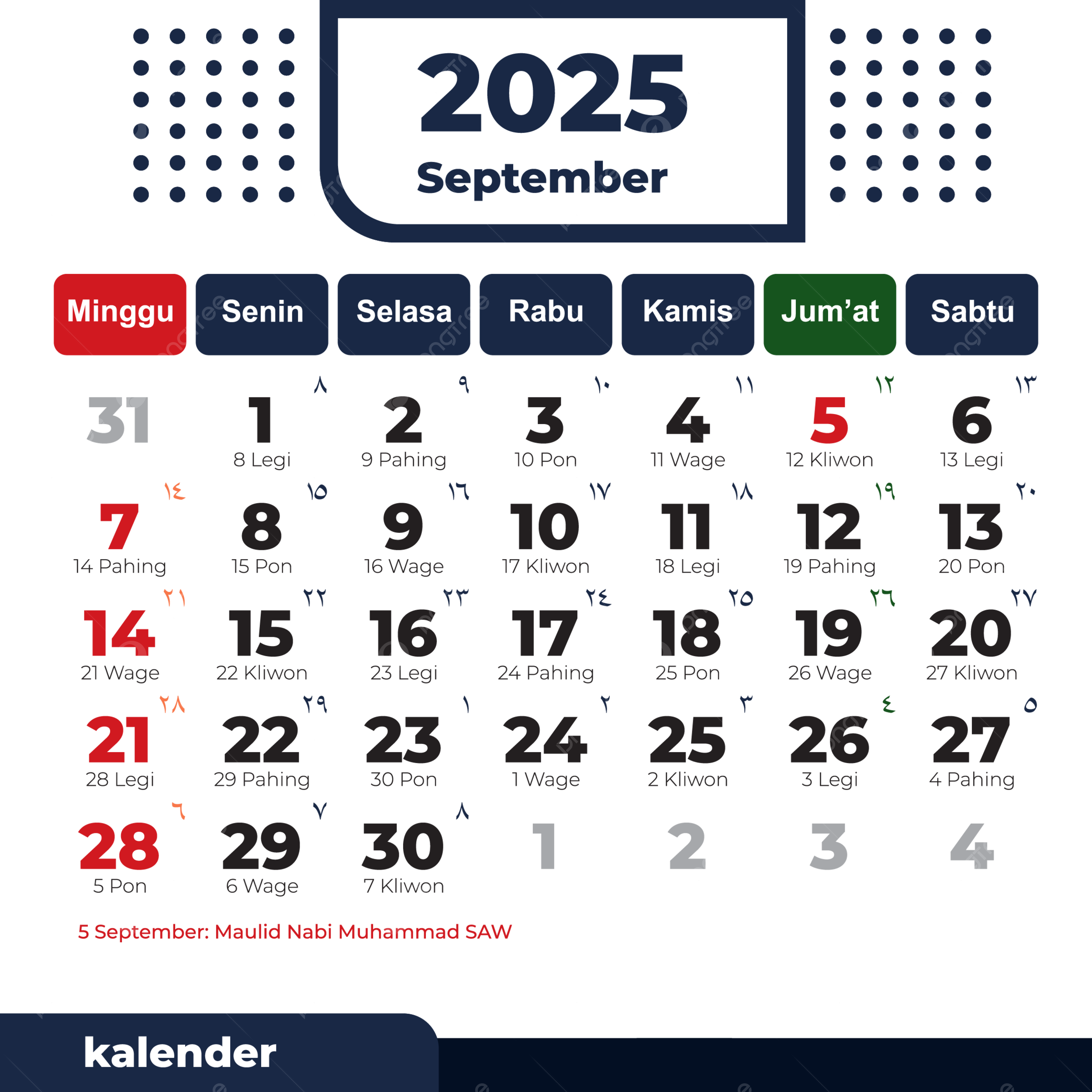 September 2025 Aesthetic Indonesian Calendar 2025 Calendar September 2025 Calendar Aesthetic Calendar PNG Transparent Clipart Image And PSD File For Free Download