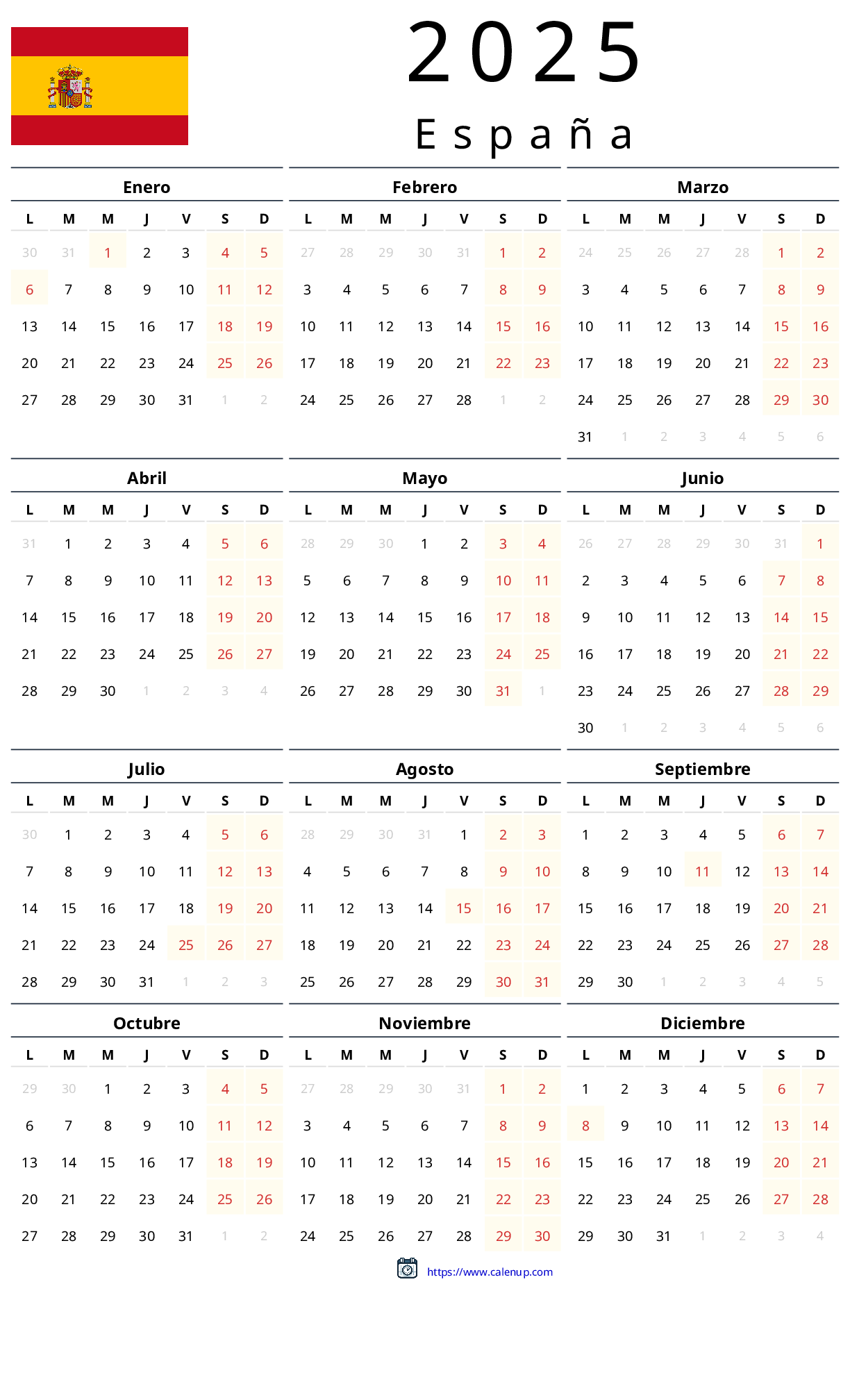 2025 Calendar Printable With Holidays For Spain CalenUP