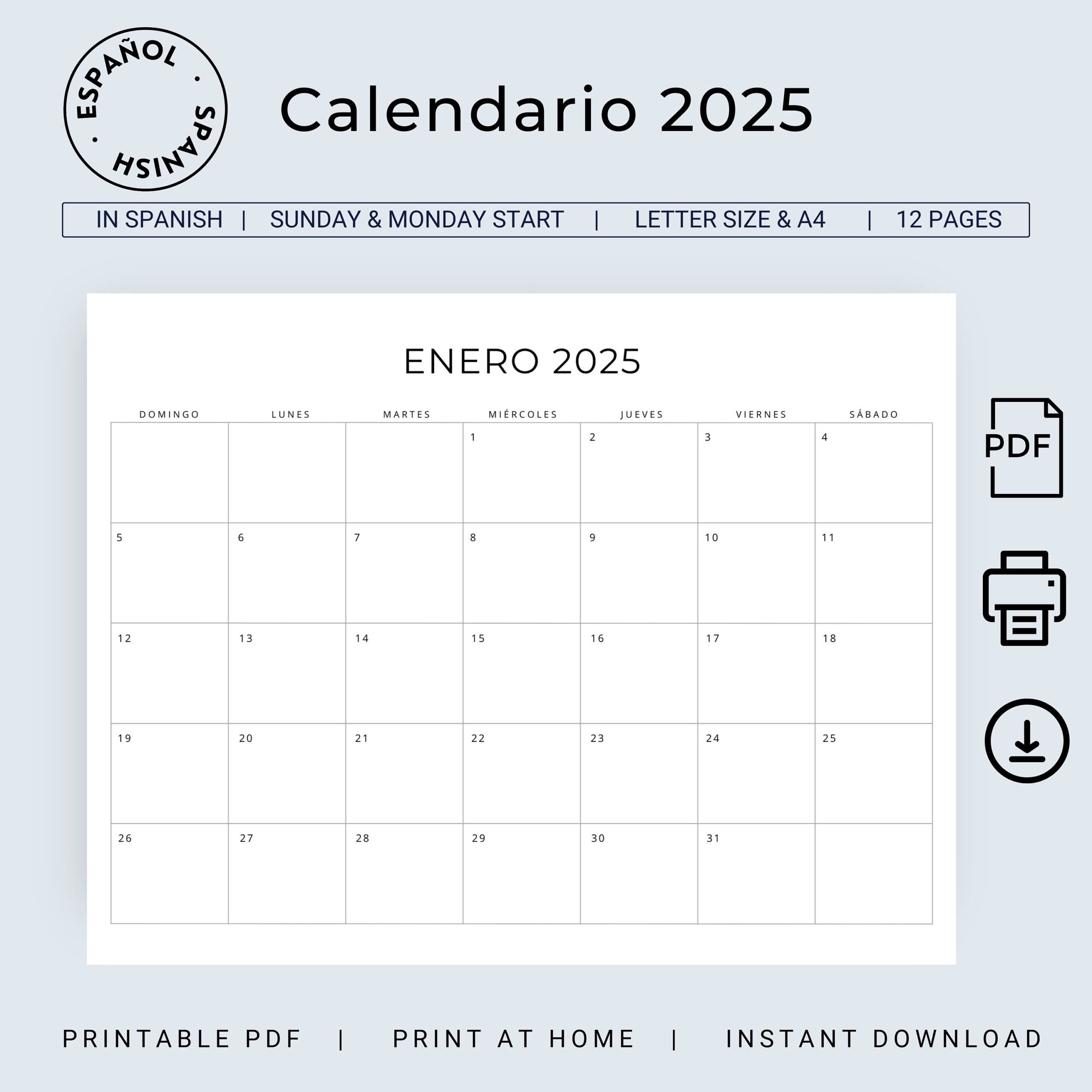 2025 Spanish Calendar 2025 Calendario Espa ol 2025 Planificadores 2025 Monthly Planner In Spanish Minimal Calendar 2025 A4 Letter Size PDF Etsy