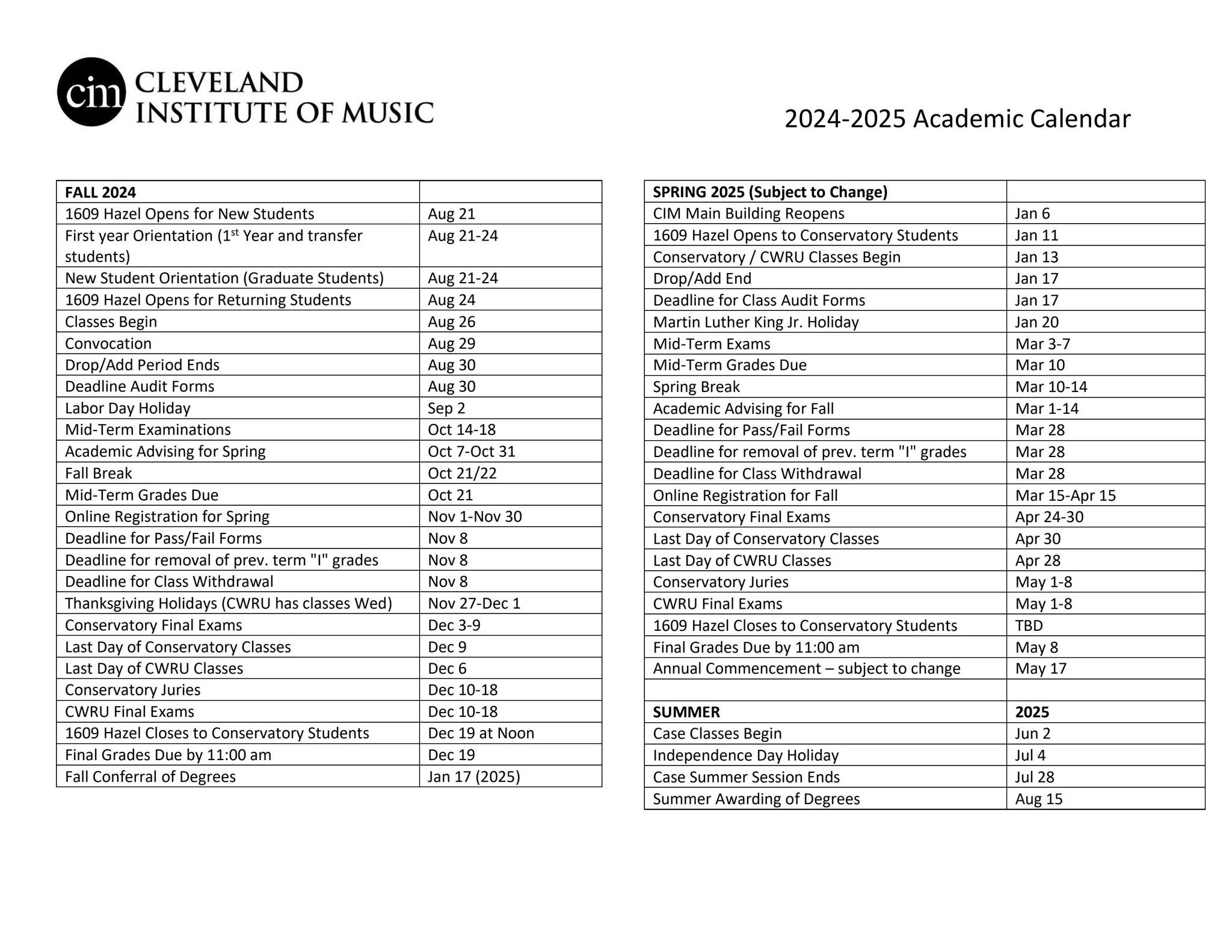 2024 25 Academic Calendar By Cleveland Institute Of Music Issuu