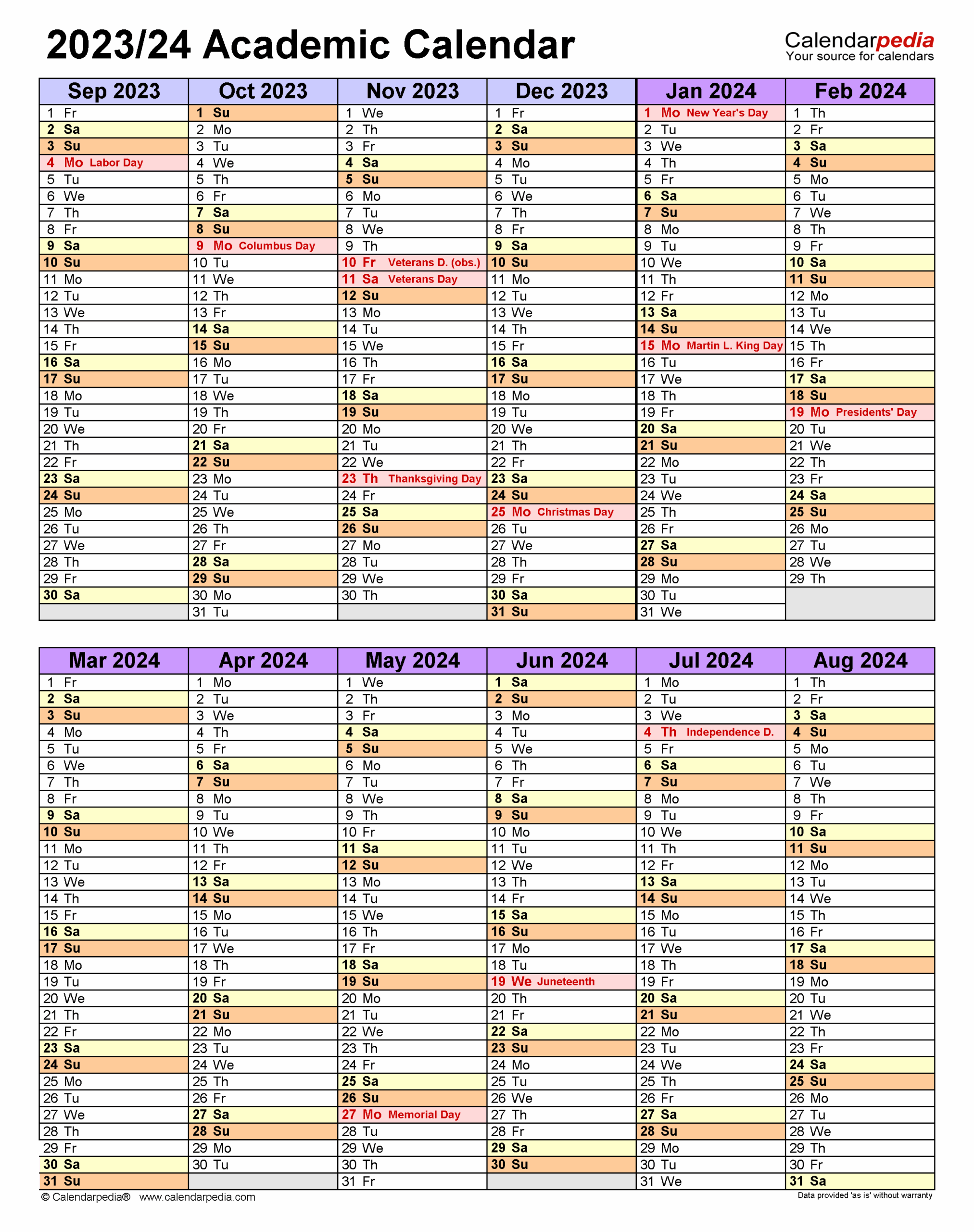 Academic Calendars 2024 2025 Free Printable PDF Templates