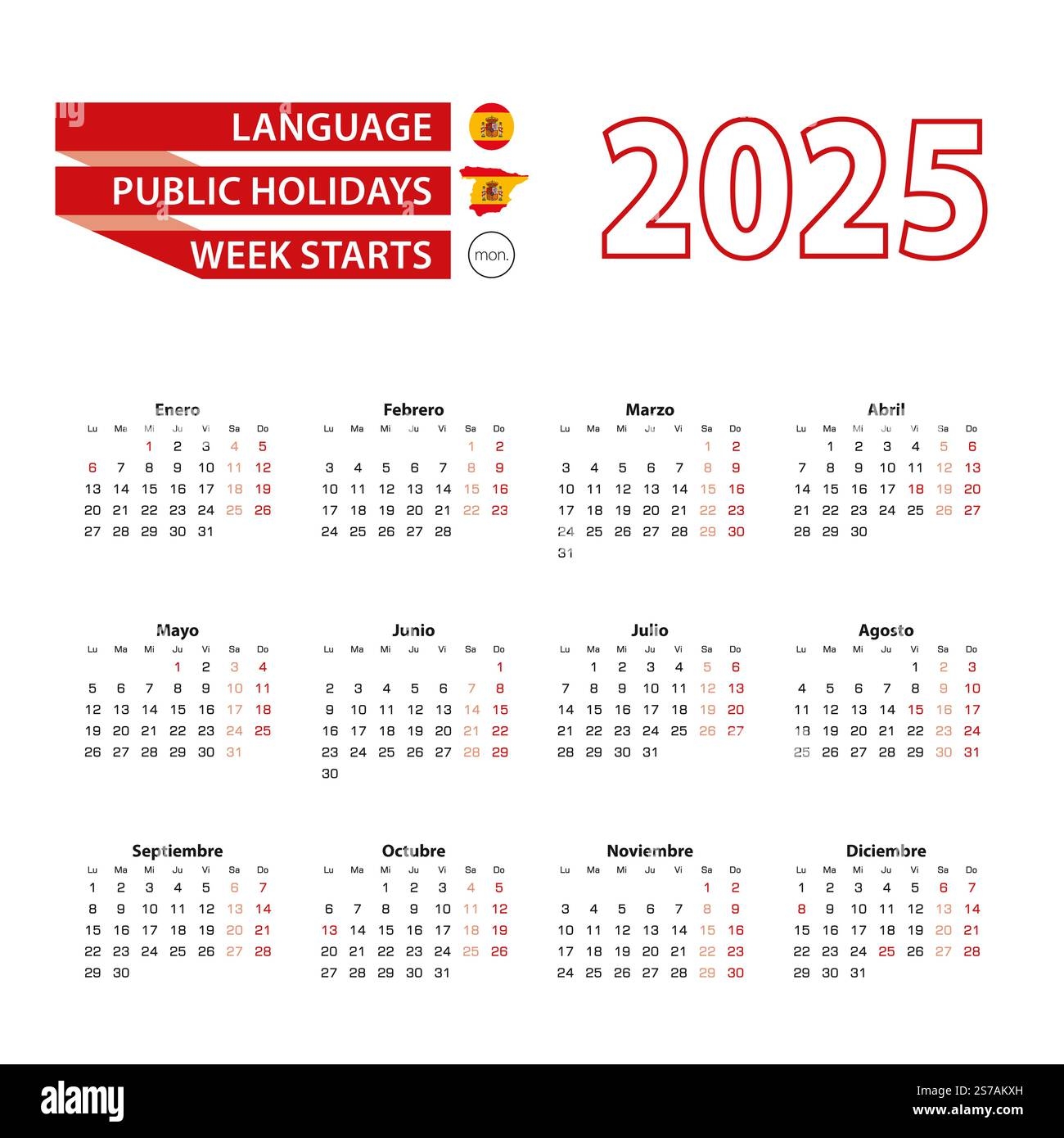 Spanish 2025 Year Calendar Printable Vector Black And Red Colors Illustration For Spain Good For Large Print Stock Vector Image U0026 Art Alamy