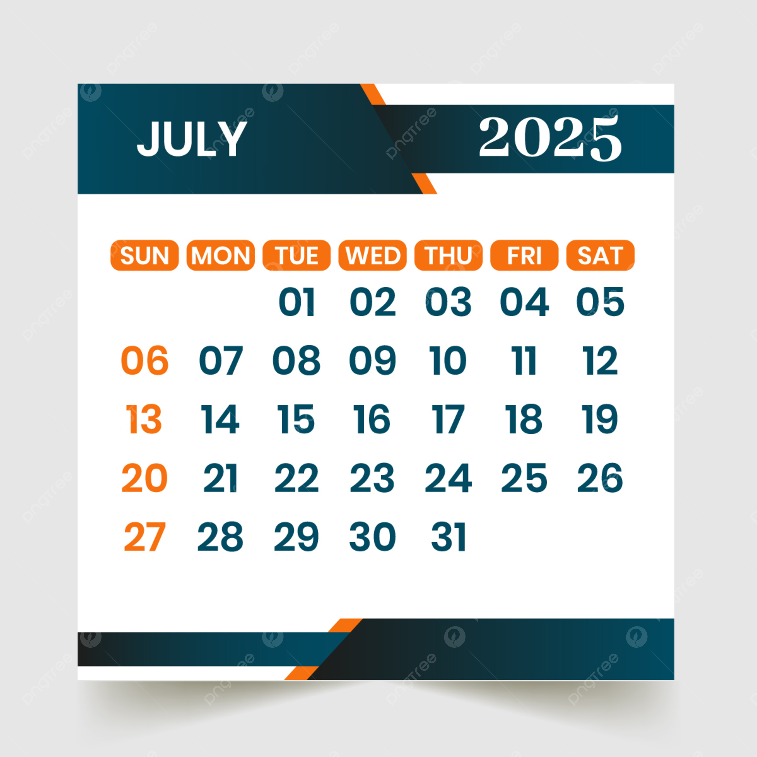 Monthly Calendar July 2025 Clipart Vector Monthly Calendar July 2025 Calendar 2025 PNG And Vector With Transparent Background For Free Download