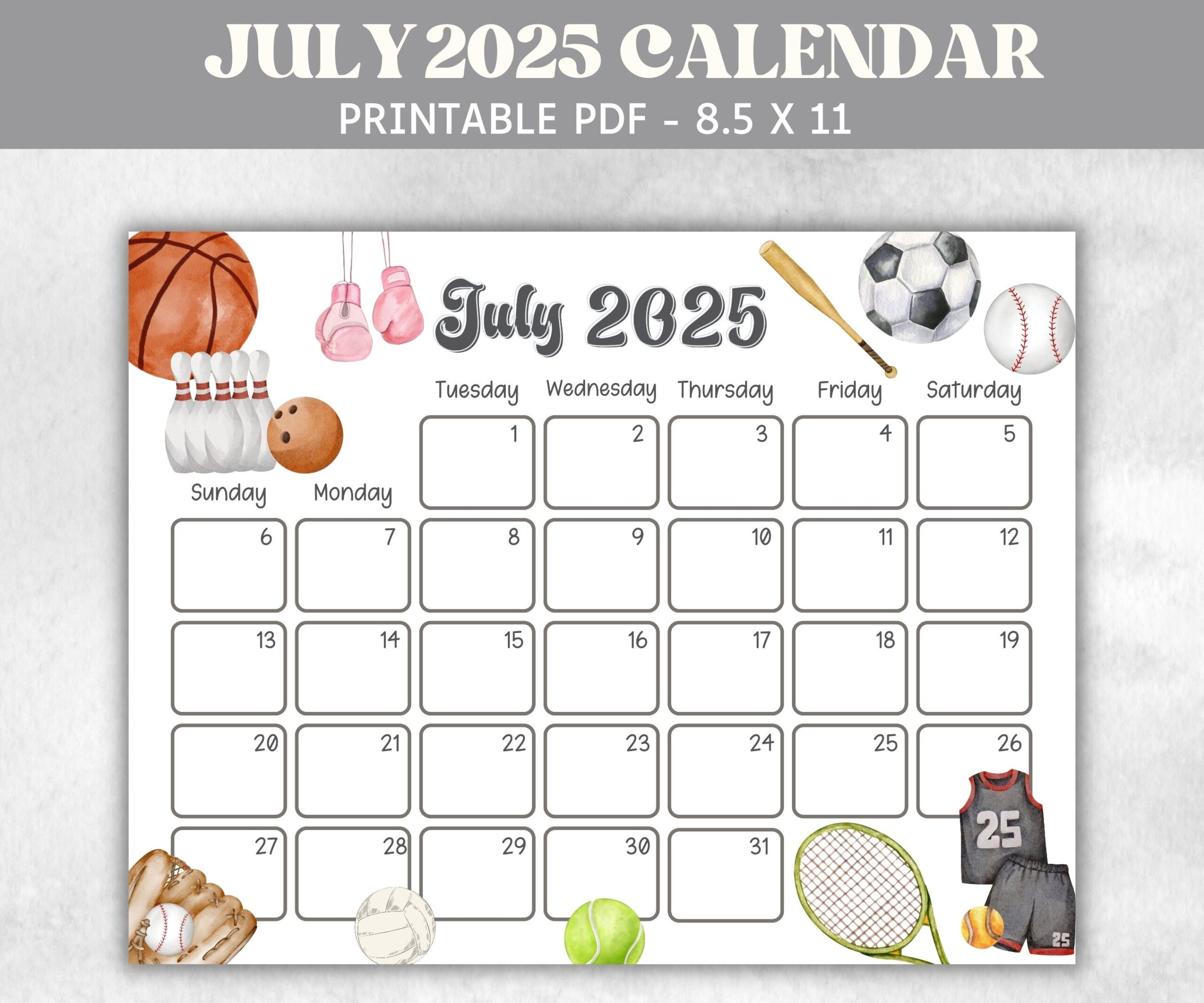 Kids July 2025 Calendar Printable 2025 Calendar Homeschool Preschool Calendar Board Childrens Monthly Planner Sports Calendar Etsy
