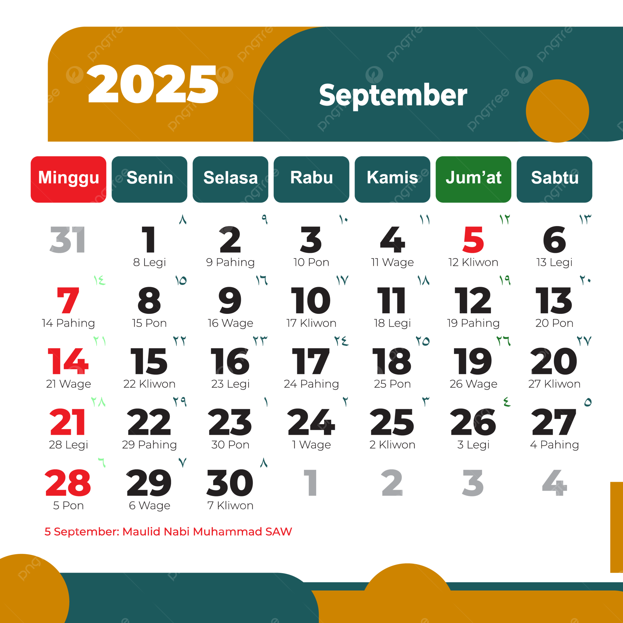 Simple September 2025 Indonesian Calendar Complete With Yellow And Green Clipart Vector 2025 Calendar Indonesian Calendar September PNG And Vector With Transparent Background For Free Download