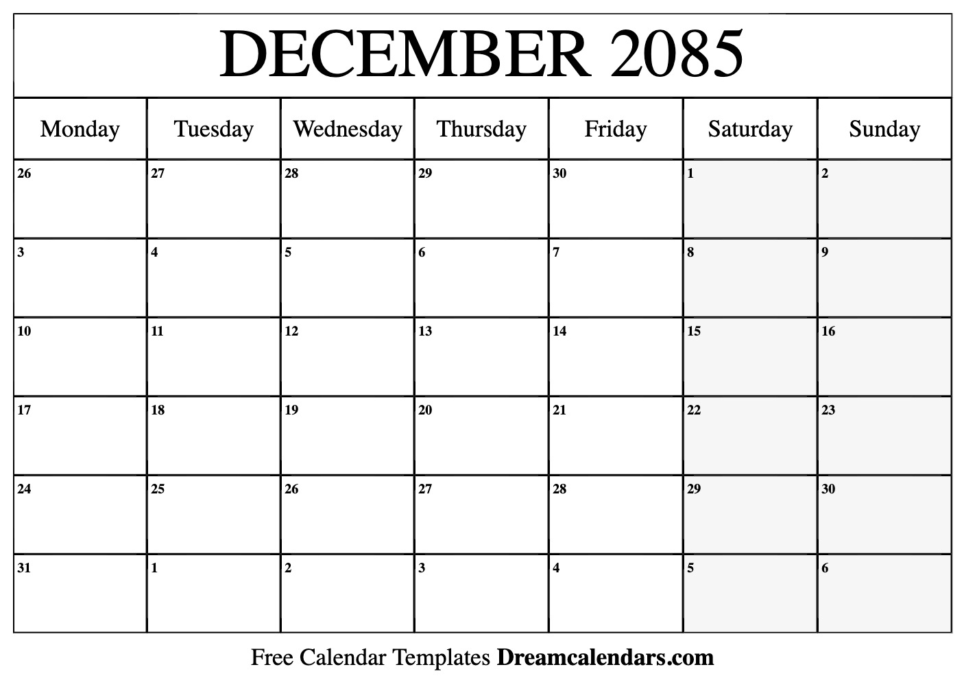 December 2085 Calendar Free Printable With Holidays And Observances