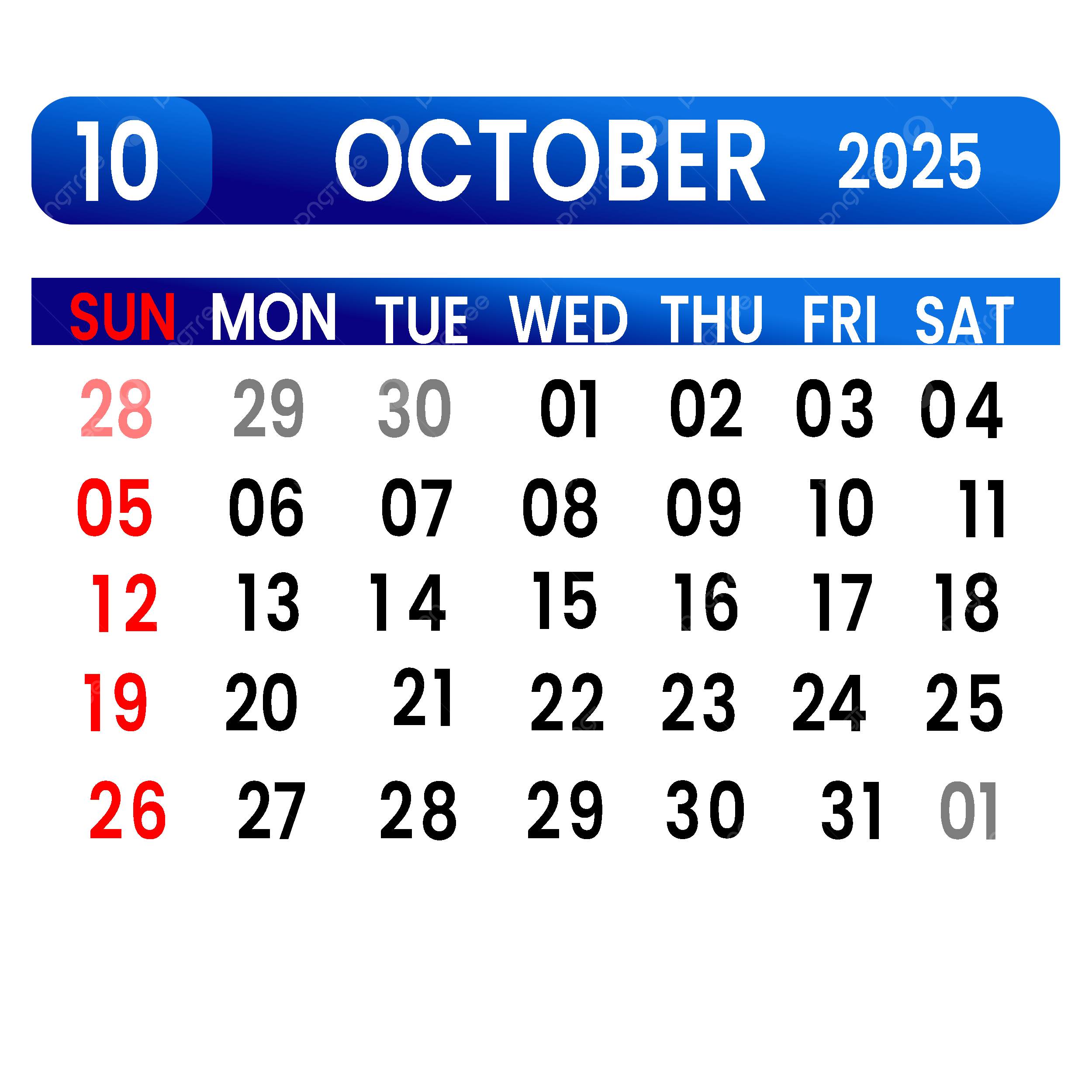 Calendar October 2025 Calendar October 2025 PNG Transparent Clipart Image And PSD File For Free Download