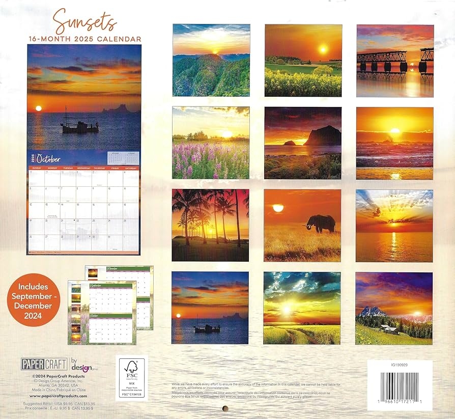 Paper Craft Sunsets 2025 Full Size Wall Calendar For Planning Scheduling And Organizing