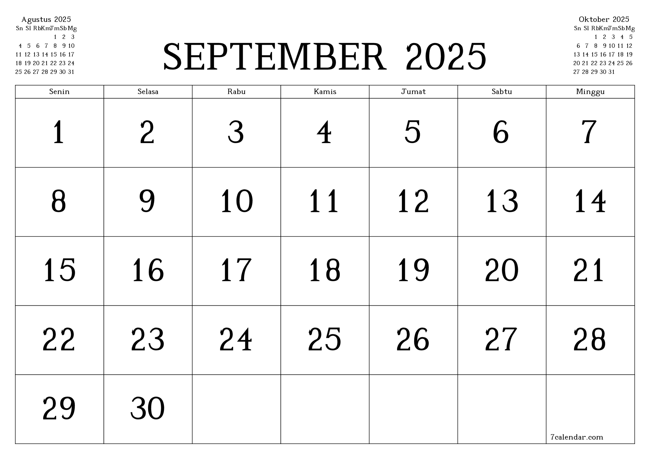 Kalender Dan Agenda Untuk Pencetakan September 2025 A4 A3 Ke PDF Dan PNG 7calendar