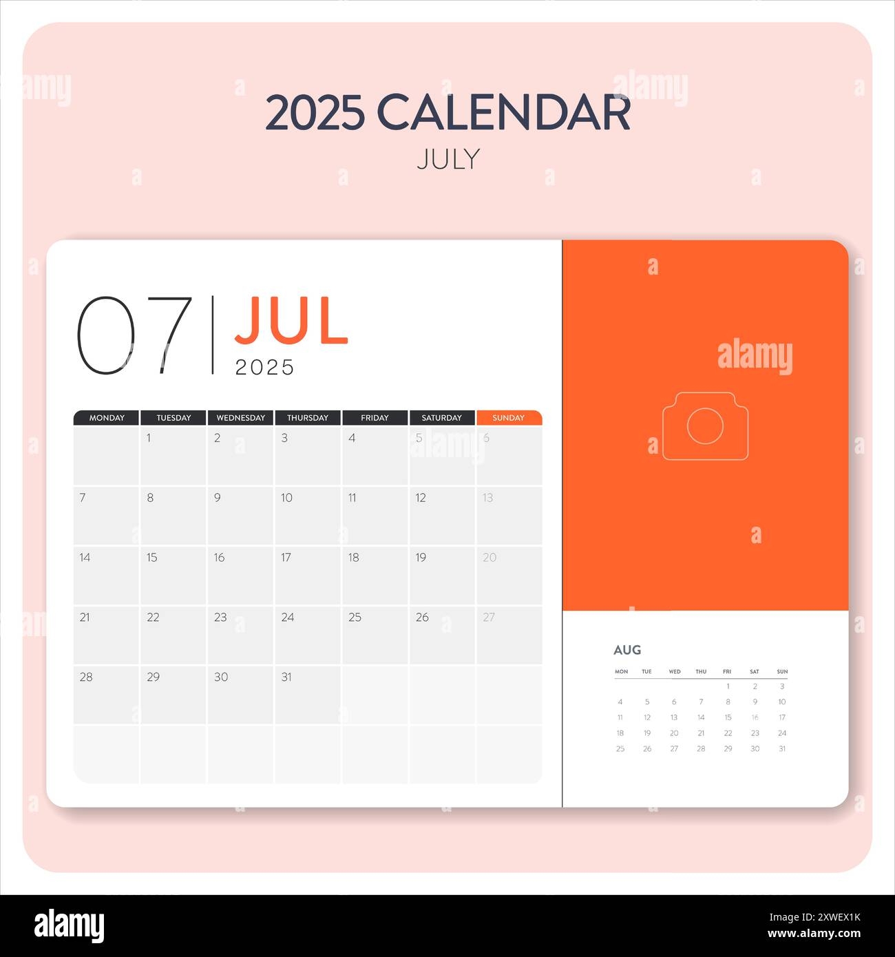 Calendar July 2025 Template Vector Desk Wall Calendar For Print Digital Calendar Or Planner Week Start On Monday Annual Calendar Layout Design El Stock Vector Image U0026 Art Alamy