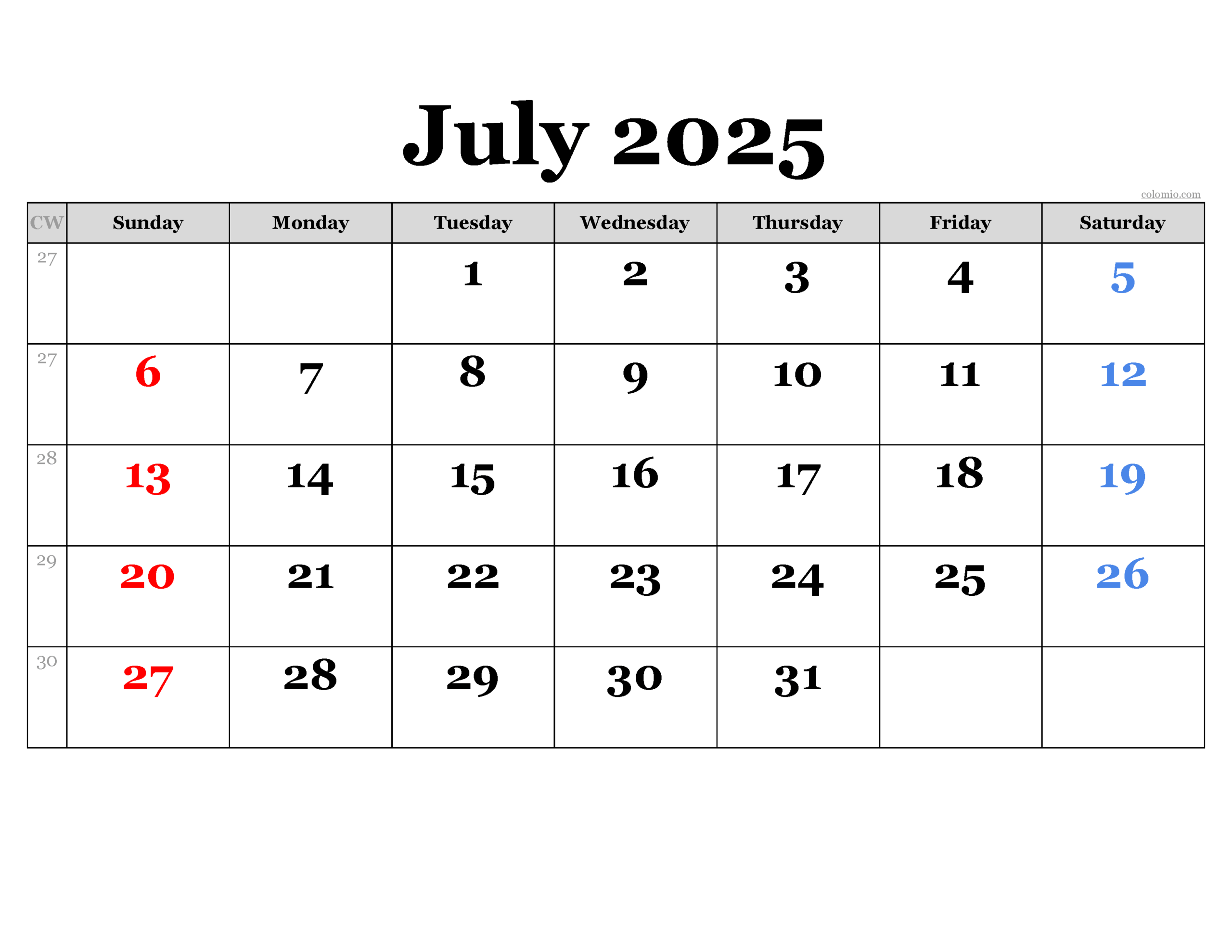Stay ahead of your busy schedule by using our weekly July 2025 printable calendar to jot down important dates, deadlines, and appointments. You’ll never miss a beat with this handy tool at your fingertips.